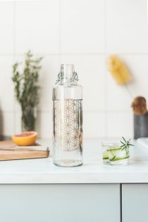 Soulbottles – Bottle made of glass, Flower of Life, gold print, capacity 1.0 l