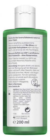 Lavera – Pure Beauty clarifying facial toner, with organic mint & salicylic acid, 200 ml