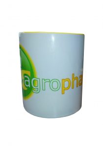 The colourful cup with logo Agropha GmbH can be used for coffee, tea or mulled wine tastetwice as well.