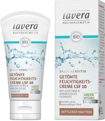 Natural care is for an even complexion. The Basis Sensitively Tinted Moisturizing Cream LAVERA with SPF 10 provides intensive moisture and, with its light tint, hides skin imperfections, redness and signs of tiredness.