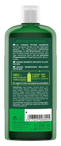 Whether fine, damaged or dandruff-prone hair: the shampoos LOGONA were specifically developed for the different needs of the scalp and hair. All shampoos clean extremely gently with mild detergents of vegetable origin and are ideally suited for daily use. Vitalizing herbal ingredients and natural moisturizers ensure a natural balance of hair and scalp – and long-lasting hair full of shine, suppleness and elasticity. Massage gently into damp hair, leave on briefly and rinse. Recommended for daily use.