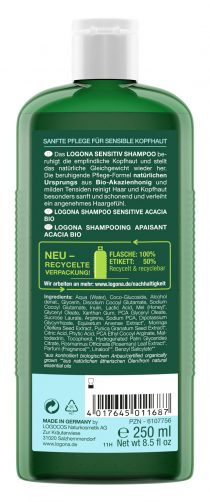 Whether fine, damaged or dandruff-prone hair: the shampoos LOGONA were specifically developed for the different needs of the scalp and hair. All shampoos clean extremely gently with mild detergents of vegetable origin and are ideally suited for daily use. Vitalizing herbal ingredients and natural moisturizers ensure a natural balance of hair and scalp – and long-lasting hair full of shine, suppleness and elasticity. Massage gently into wet hair, leave on briefly and rinse. Recommended for daily use.
