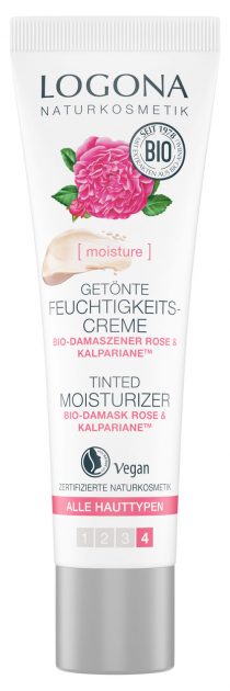 The TINTED MOISTURIZING CREAM LOGONA with purely natural extracts from the BIO Damascus rose and KalparianeTM from the brown alga provides intensive moisture. The light, vegan formula with mineral color pigments adapts to the natural skin tone and gently evens out small irregularities. The cream is for a radiant, even complexion. Apply to cleansed face and distribute evenly.
