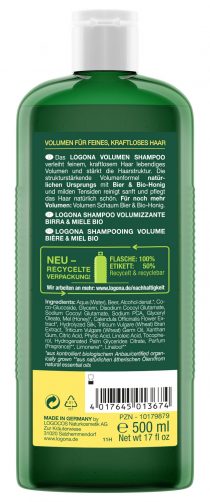 Whether fine, damaged or dandruff-prone hair: the shampoos LOGONA were specifically developed for the different needs of the scalp and hair. All shampoos clean extremely gently with mild detergents of vegetable origin and are ideally suited for daily use. Vitalizing herbal ingredients and natural moisturizers ensure a natural balance of hair and scalp – and long-lasting hair full of shine, suppleness and elasticity. Massage gently into wet hair, leave on briefly and rinse. Recommended for daily use.