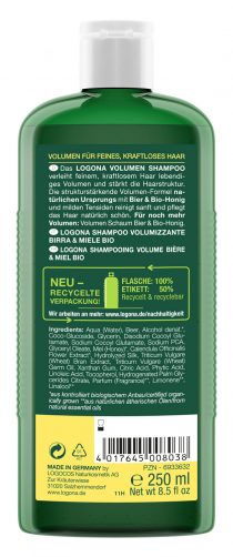 Whether fine, damaged or dandruff-prone hair: the shampoos LOGONA were specifically developed for the different needs of the scalp and hair. All shampoos clean extremely gently with mild detergents of vegetable origin and are ideally suited for daily use. Vitalizing herbal ingredients and natural moisturizers ensure a natural balance of hair and scalp – and long-lasting hair full of shine, suppleness and elasticity. Massage gently into damp hair, leave on briefly and rinse. Recommended for daily use.